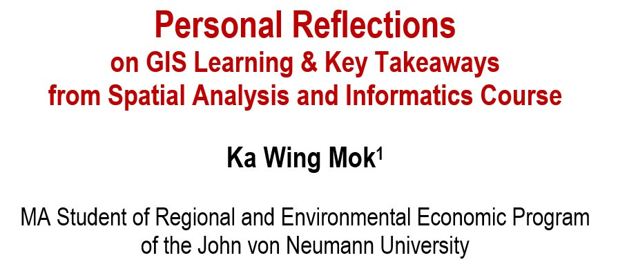 I want to share my personal thoughts on the GIS topics in the Spatial Analysis and Informatics course because I was originally a little confused by the digital world of Geographic Information Systems. It has been quite a journey or a tough challenge for me to get into this area as an older student (or retiree!) with little computer or IT knowledge. However, it has surprisingly helped me learn valuable things about spatial analysis & informatics in general and GIS in particular. The message below is a personal reflection on the process of me first meeting this course in fright, but then finally being able to realize the amazing takeaways I have learned with ease, especially how they relate to the broader goals of my MA in Regional and Environmental Economics program at John von Neumann University.